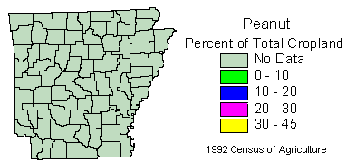 The 1992 Agriculture Census shows no data for peanut production in Arkansas.