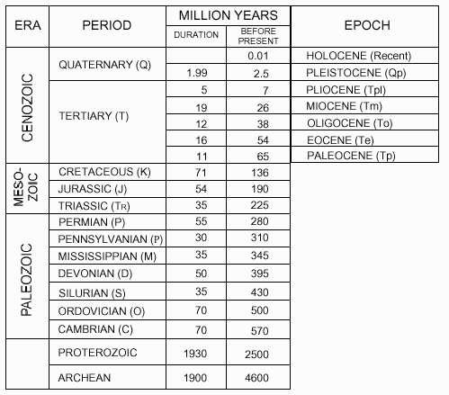 Fig. 1. Geologic time scale for the southeastern United States.