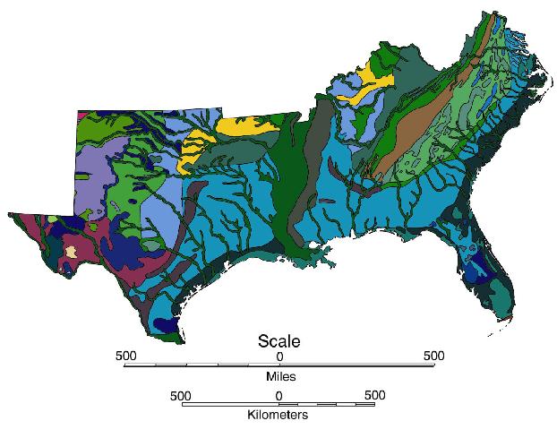Fig.2. Geologic map of the southeastern United States.