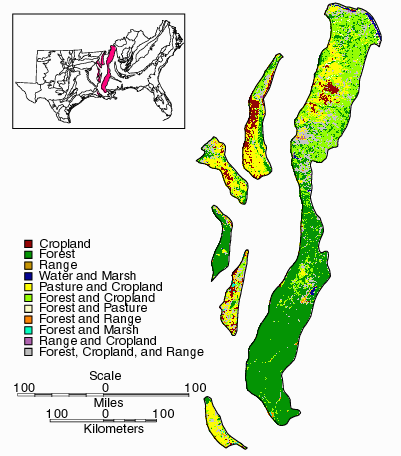 Most of MLRA 134 is in farms with about 35% in cropland, which consists of primarily cotton, rice, soybeans, corn and wheat. About 16% of the area is in pasture or hay and about 46% is in forest of mixed pine and hardwoods. Lumber is the major forest product and some pulpwood is harvested. About 3% of the area is used for urban development or other purposes. Dairying is an important enterprise locally. A small percent of the area is federally owned, and about 3% of the area is used for urban development or other purposes.