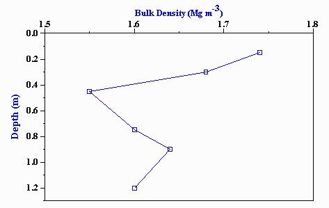 Fig. 7. Bulk density of Tipton sandy loam at different depths.
