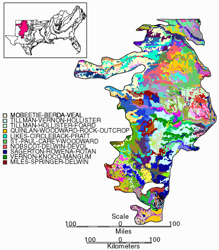 Fig. 3. STATSGO soils of the Central Rolling Red Plains MLRA 78.