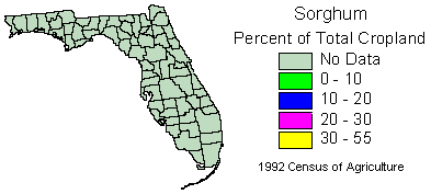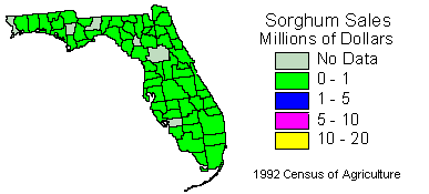 Data for sorghum production for Florida were not available in the 1992 Agriculture Census. Sorghum sales for Florida in 1992 were 90 thousand dollars.